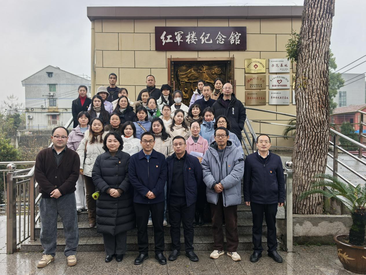 本网讯 2025年12月23日下午,图书馆党支部联合机关第六党支部在红军楼纪念馆开展以“深入学习党的二十届四中全会精神 奋力冲刺全年目标任务”为主题的党日活动。活动由图书馆党支部书记蔡惠芳主持,学校党委常委、副校长吴爱龙及图书馆党支部、机关第六党支部全体党员参加了此次活动。